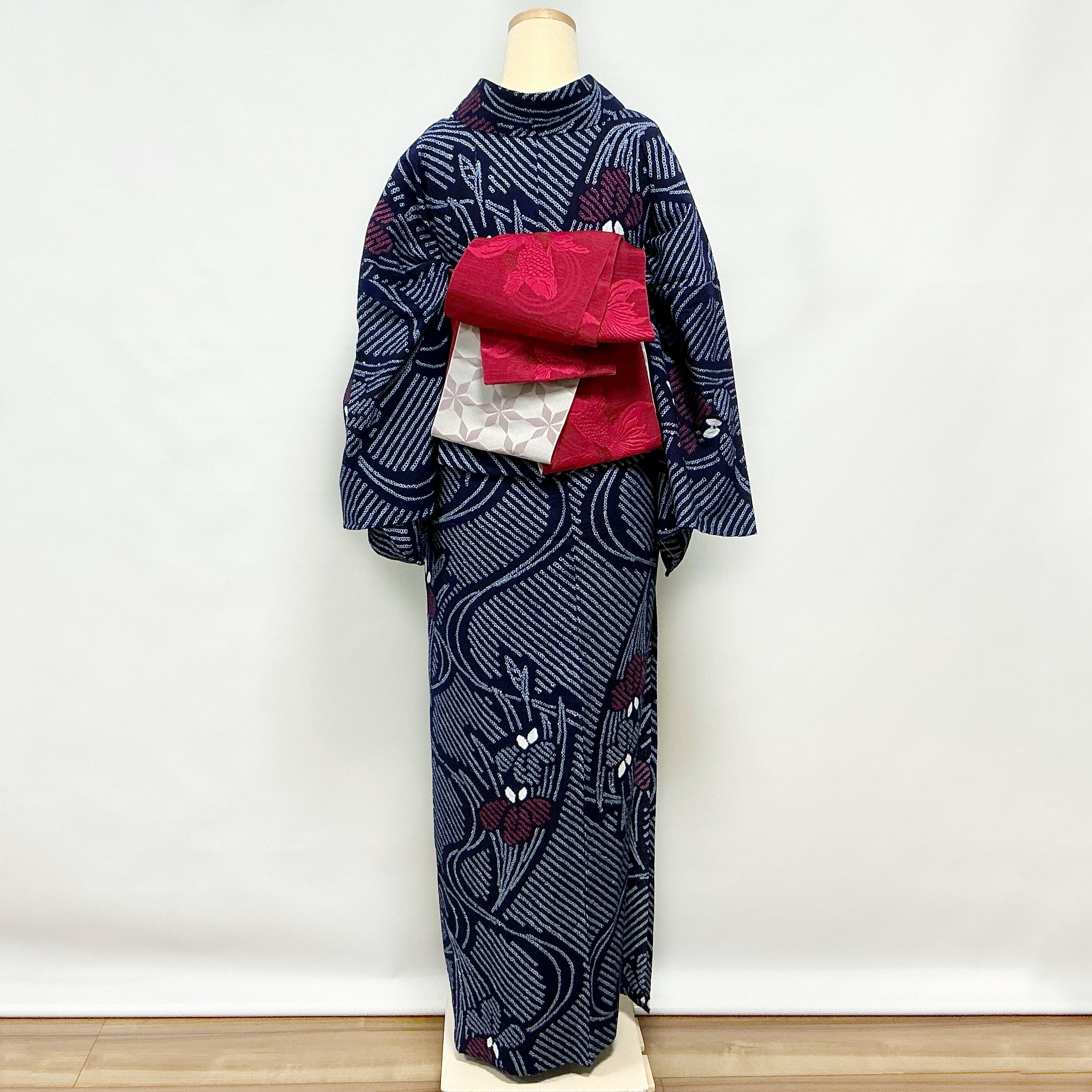 有松絞り 浴衣 流水に菖蒲柄【241054】