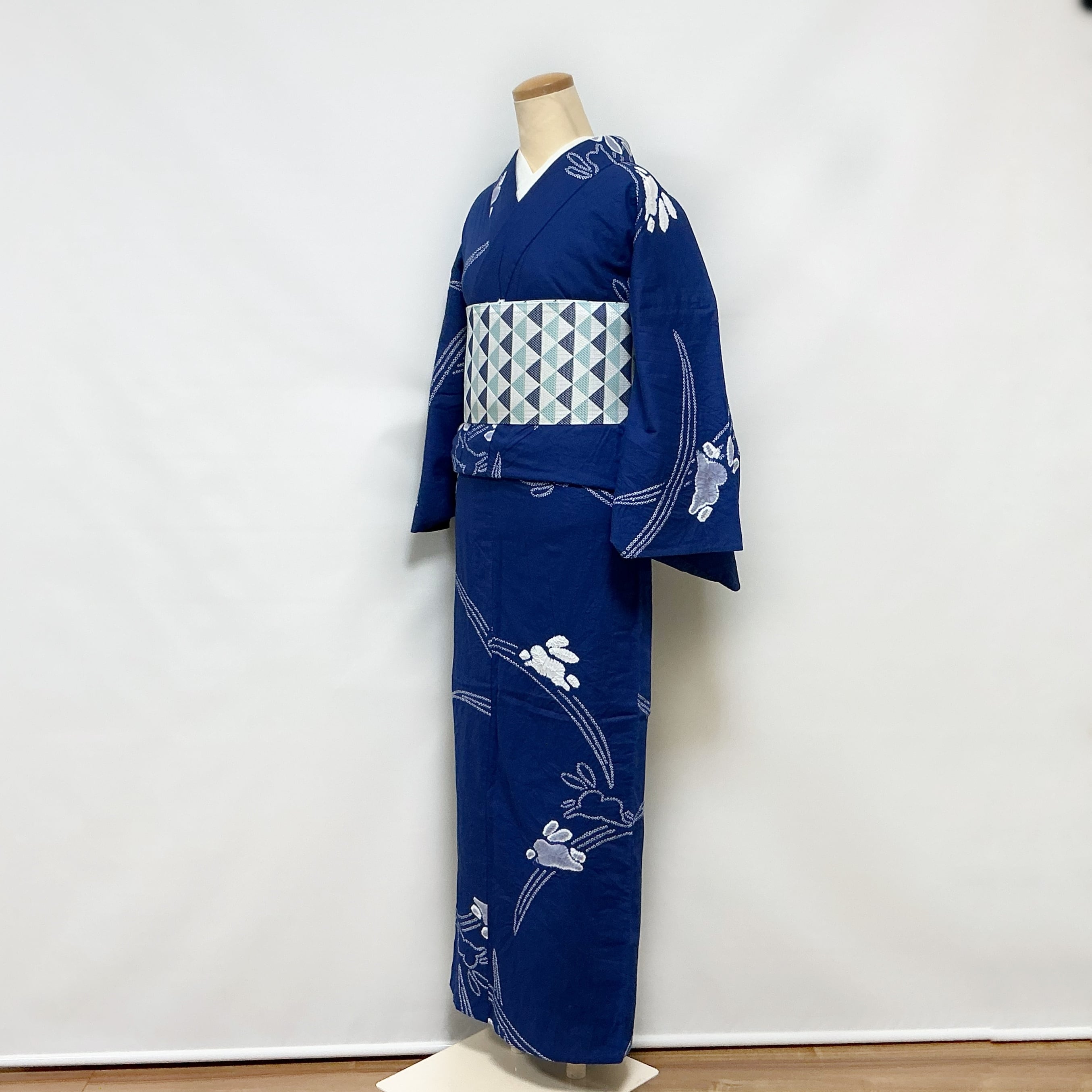 身丈長め 絞り浴衣 うさぎ柄【250889】