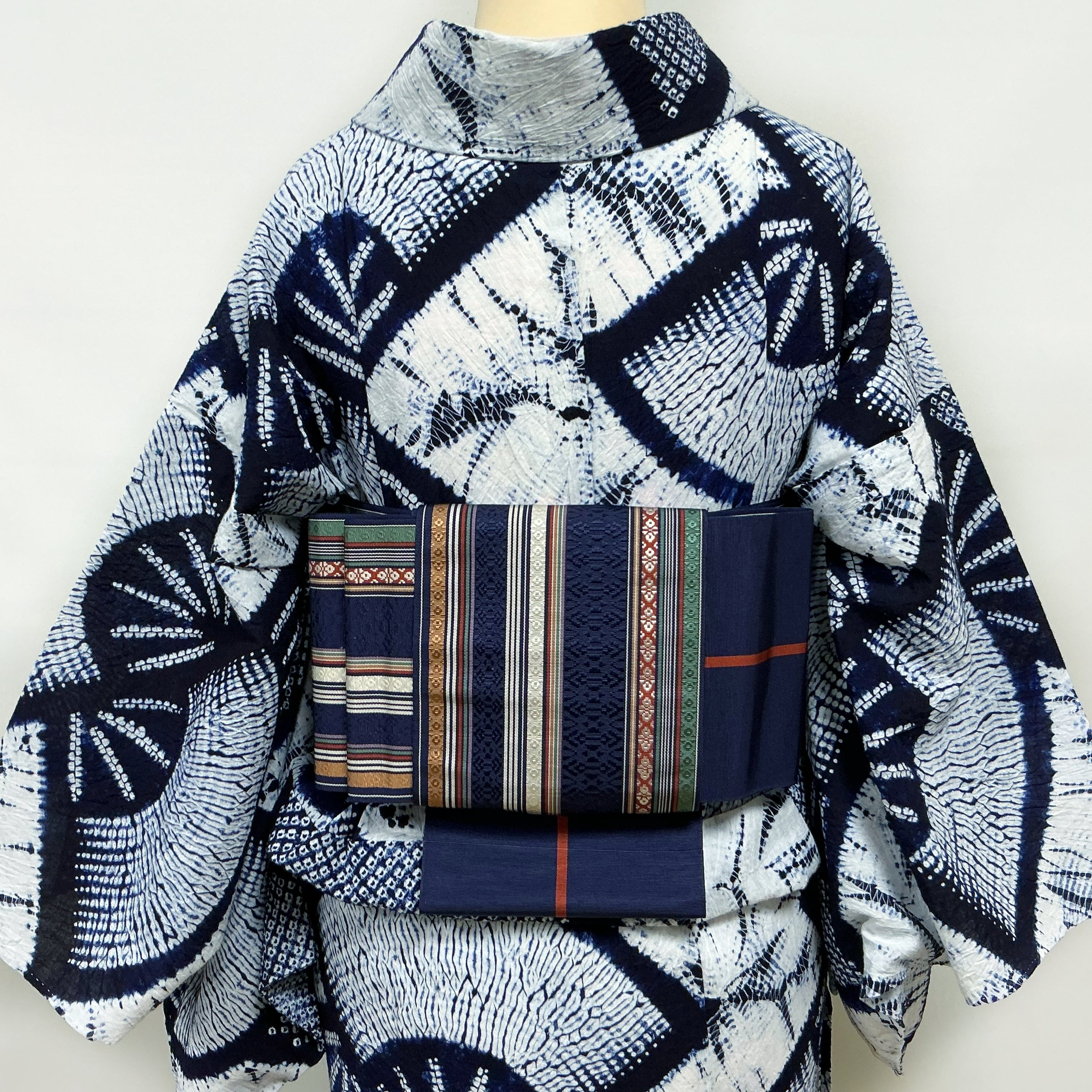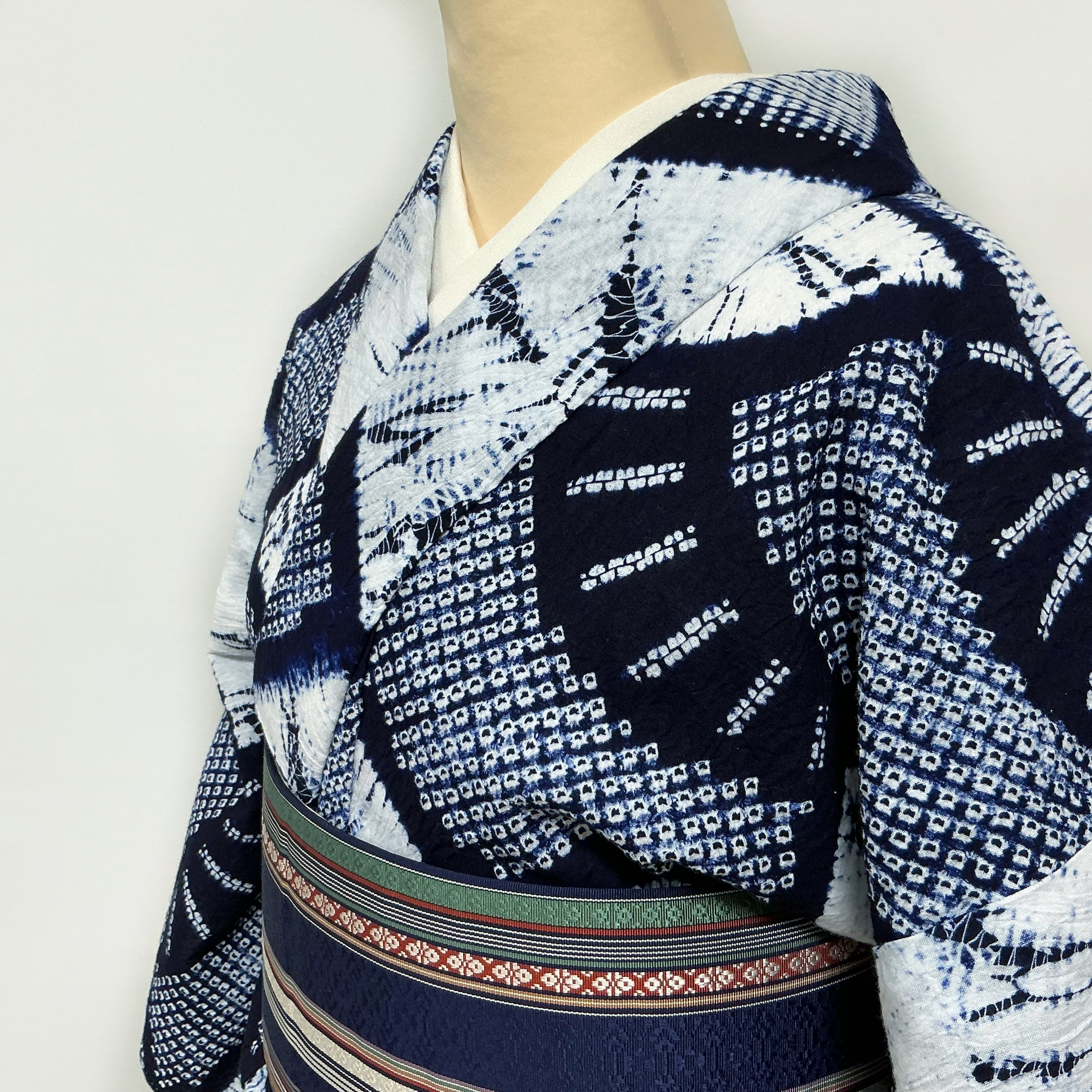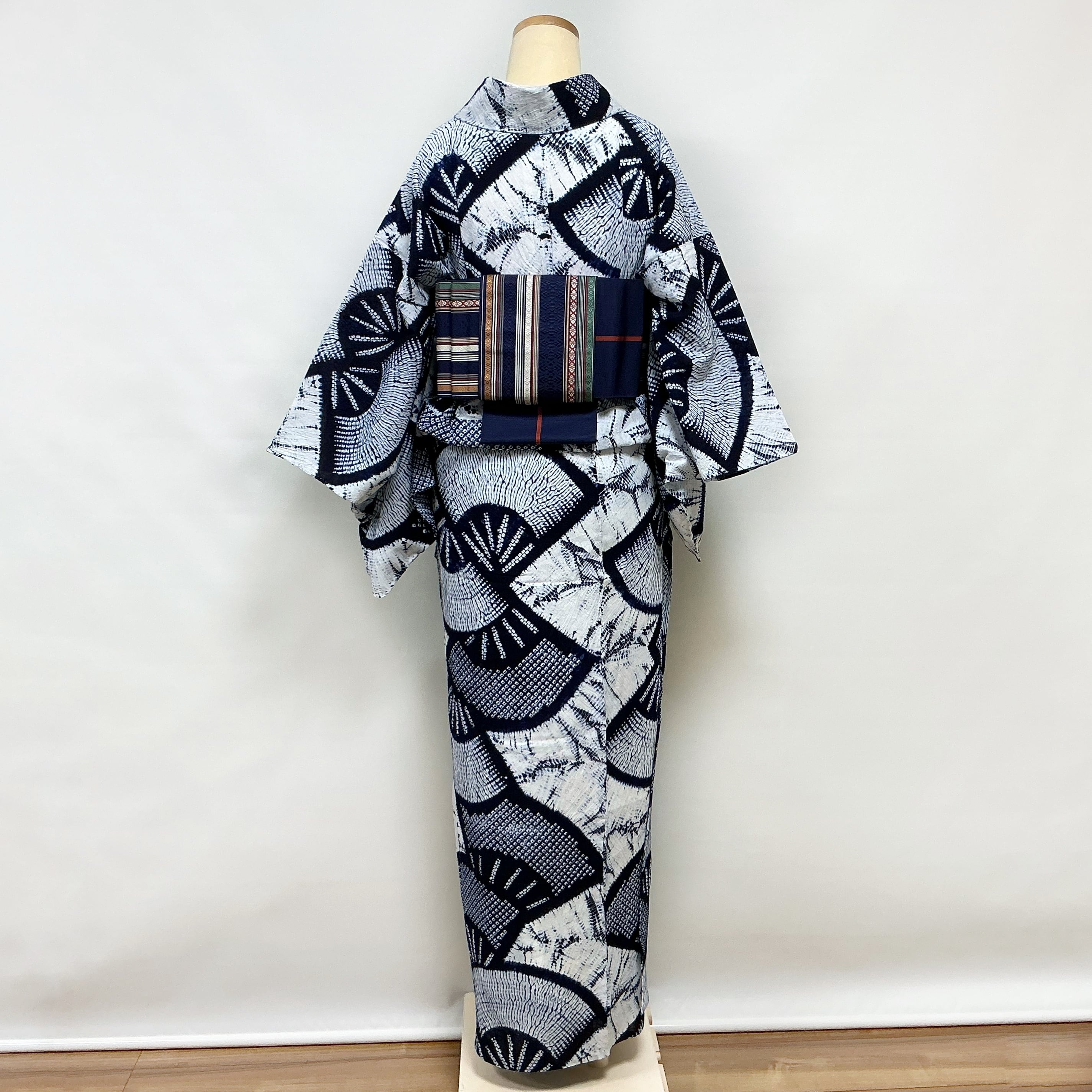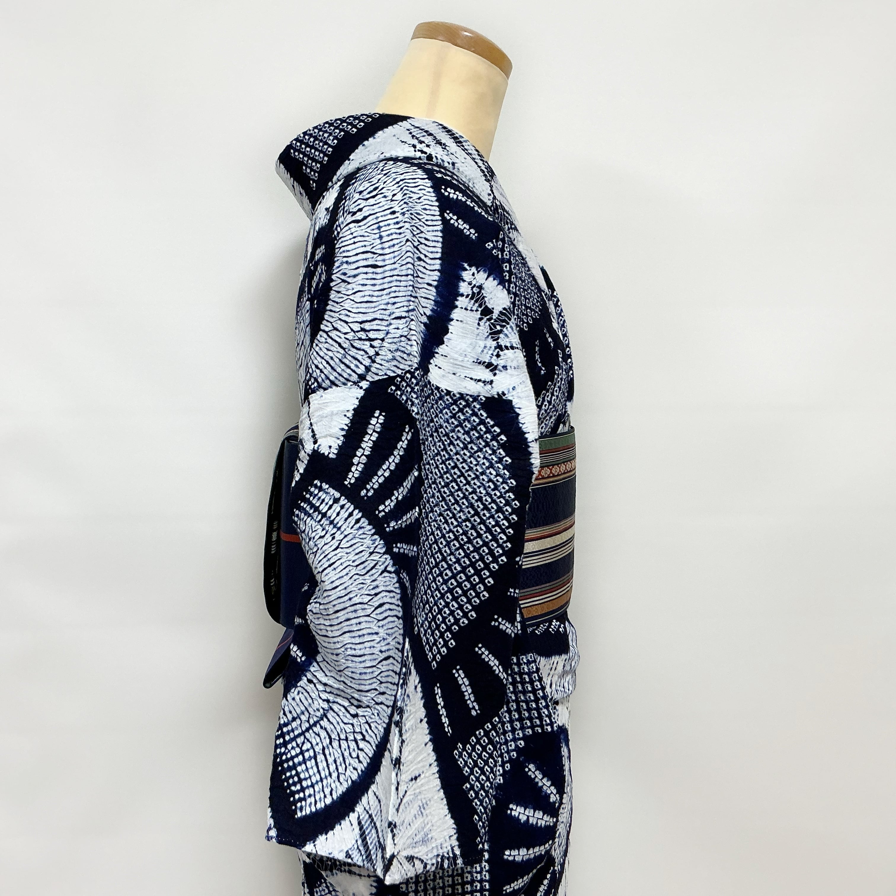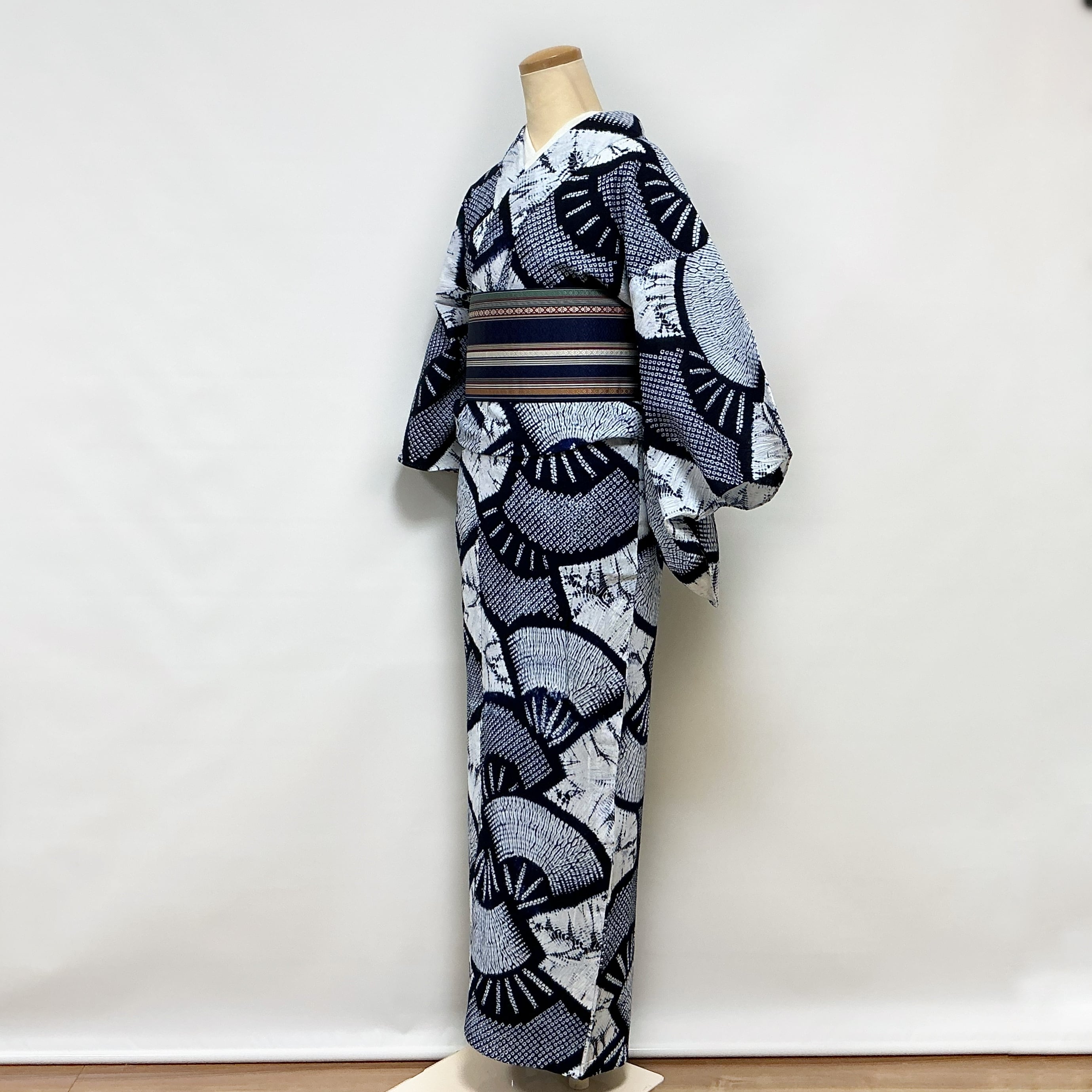 身幅広め 有松絞り 浴衣 扇柄【250661】