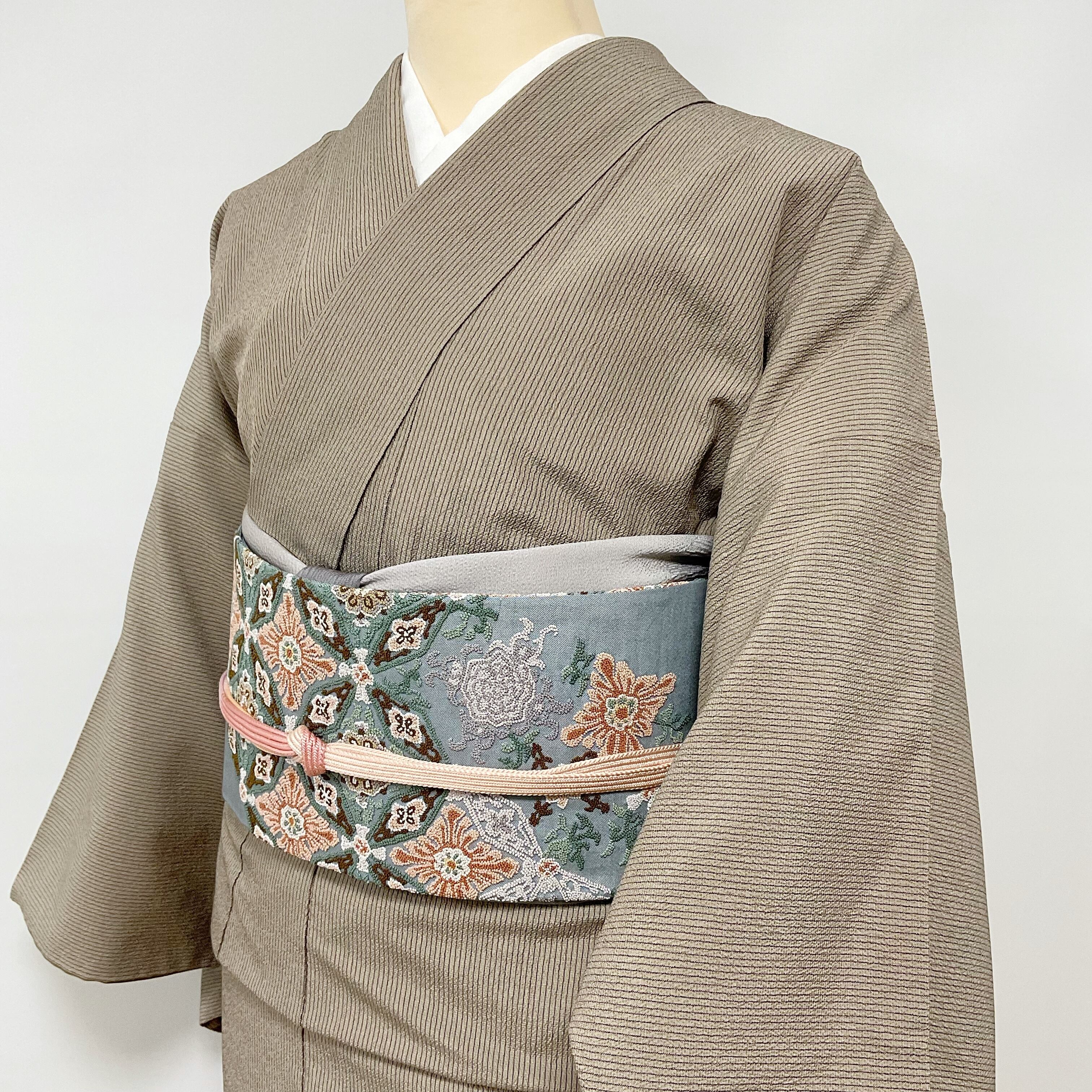 紋が入っていませんので、名古屋帯と合わせてお友達とのちょっとしたお出かけなどに最適なお着物です。