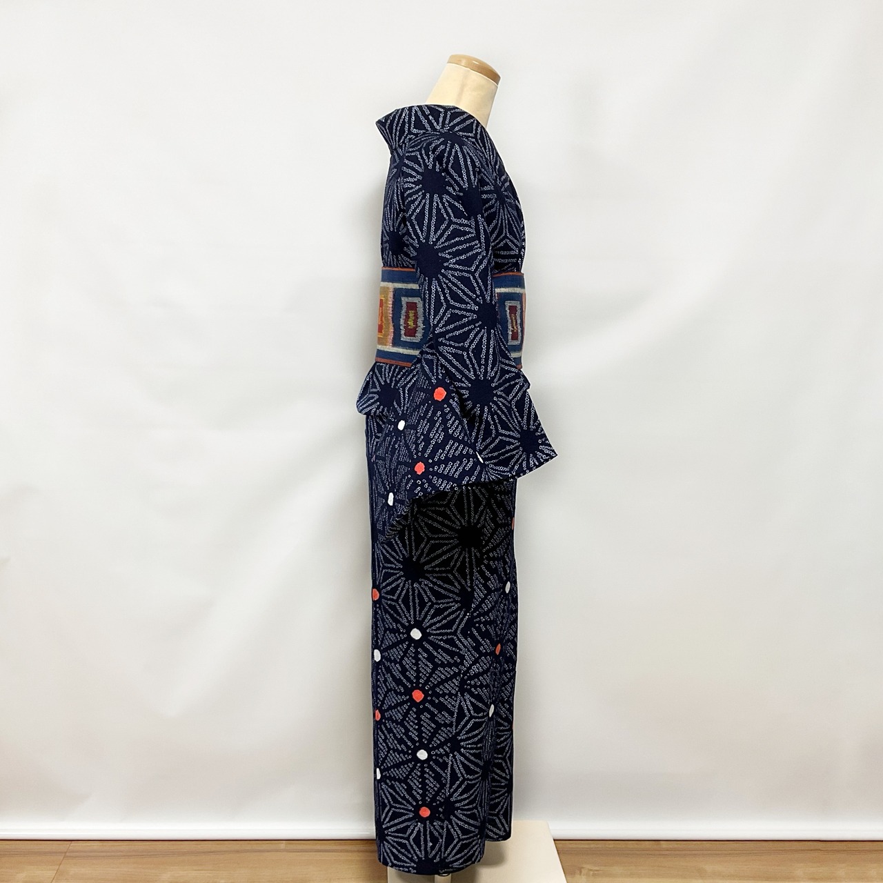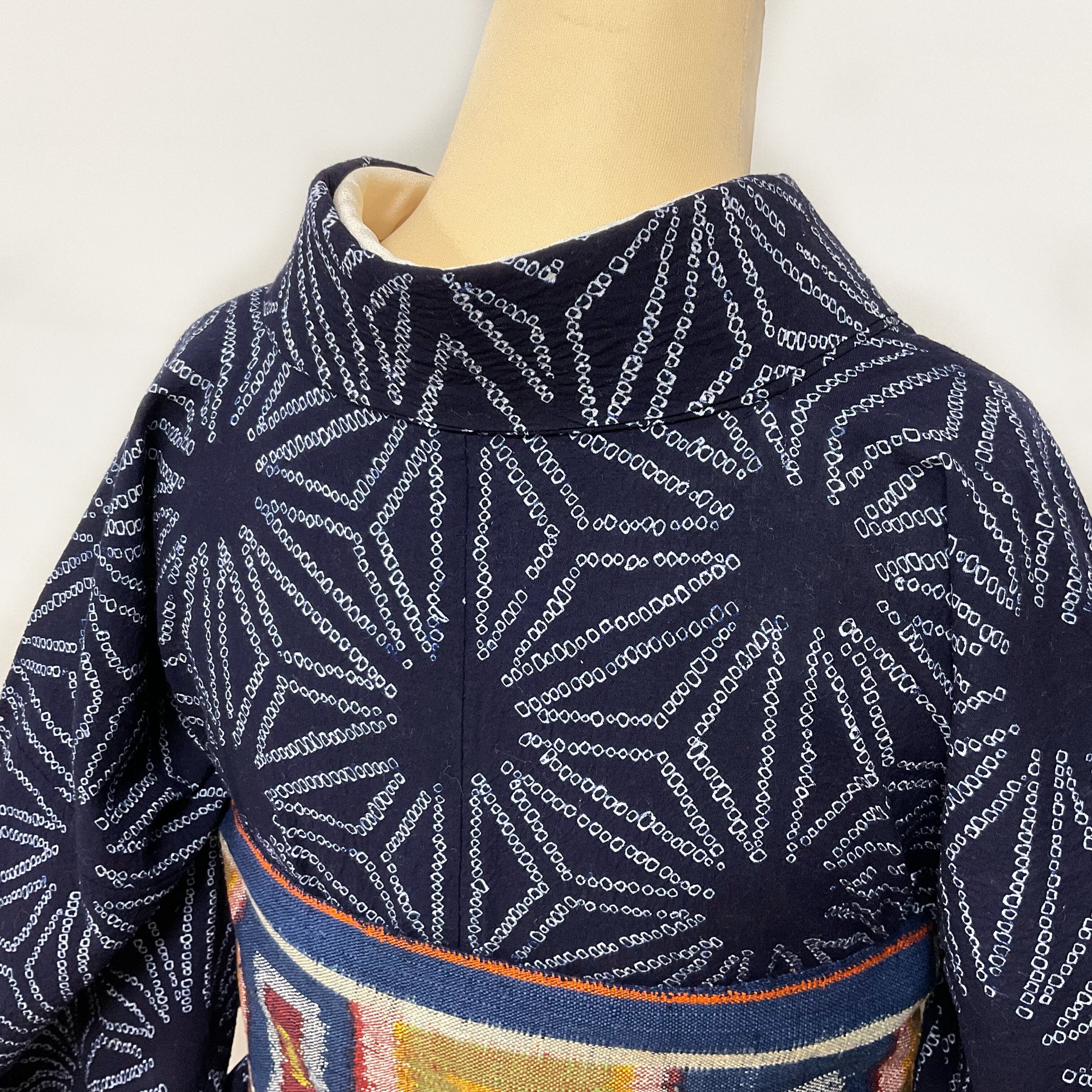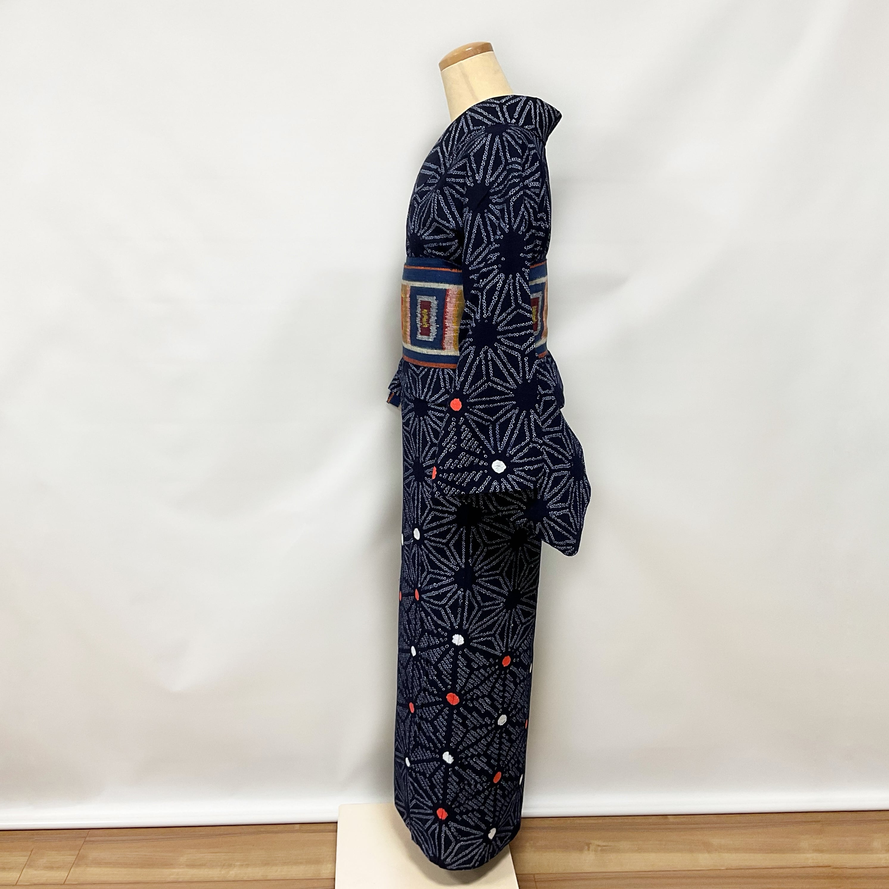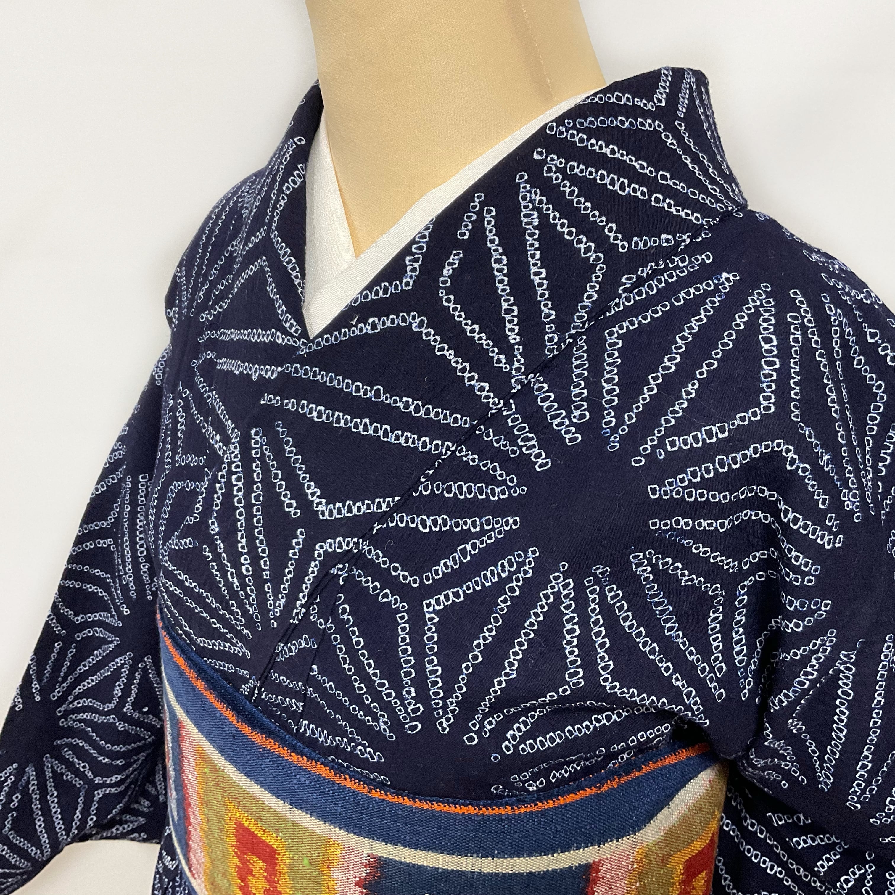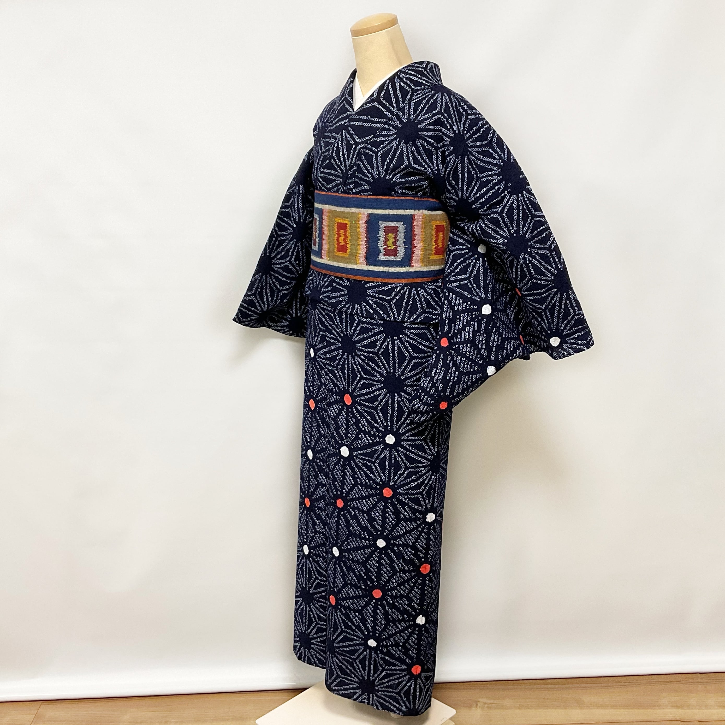 有松絞り 浴衣 麻の葉柄 身幅ゆったり【231739】