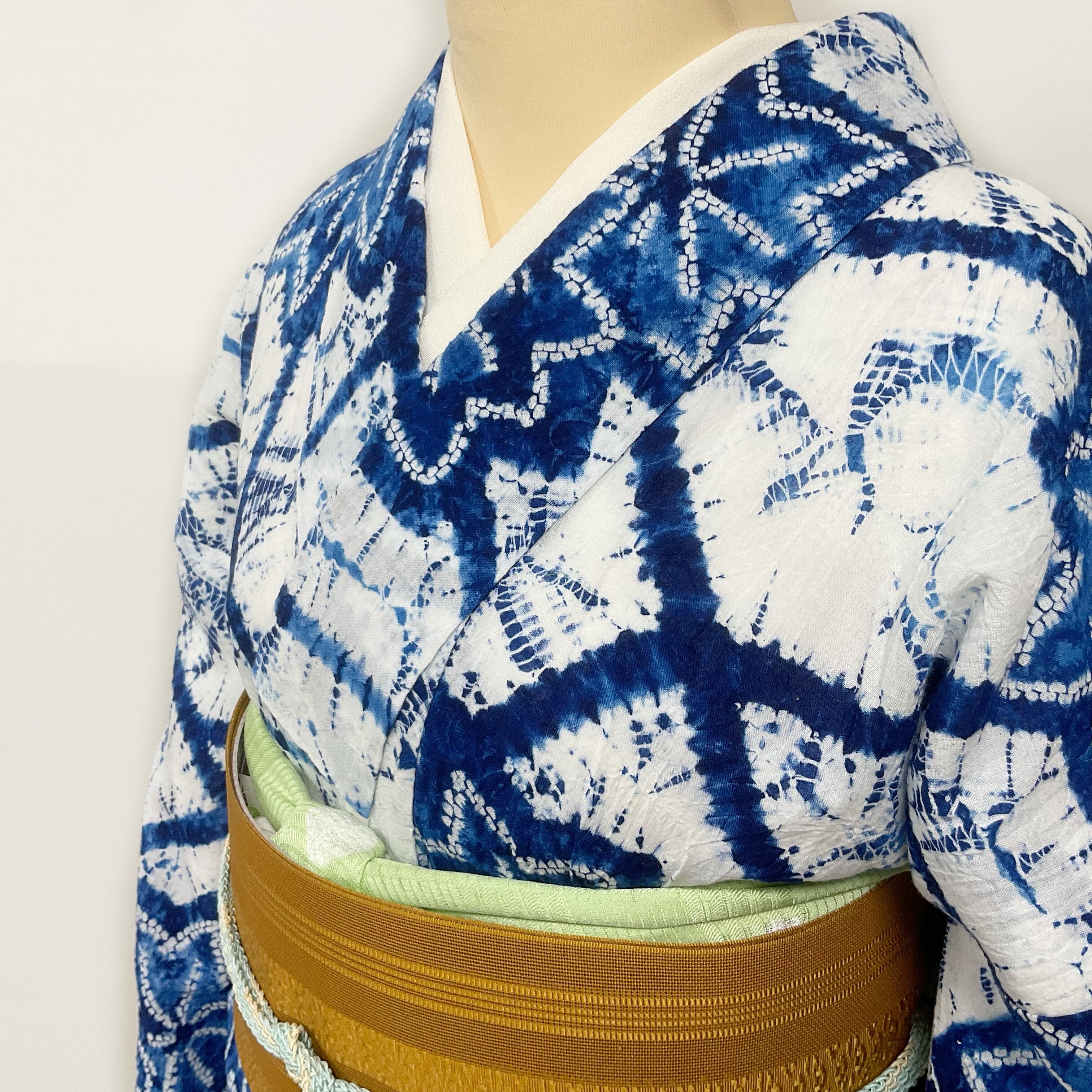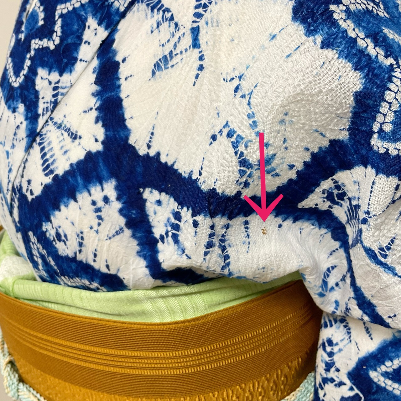 状態:リユース商品 絞り染めの際の針穴がにうっすら変色が見られる箇所がありますが、着用の際に気になる程度ではありません(写真10枚目)