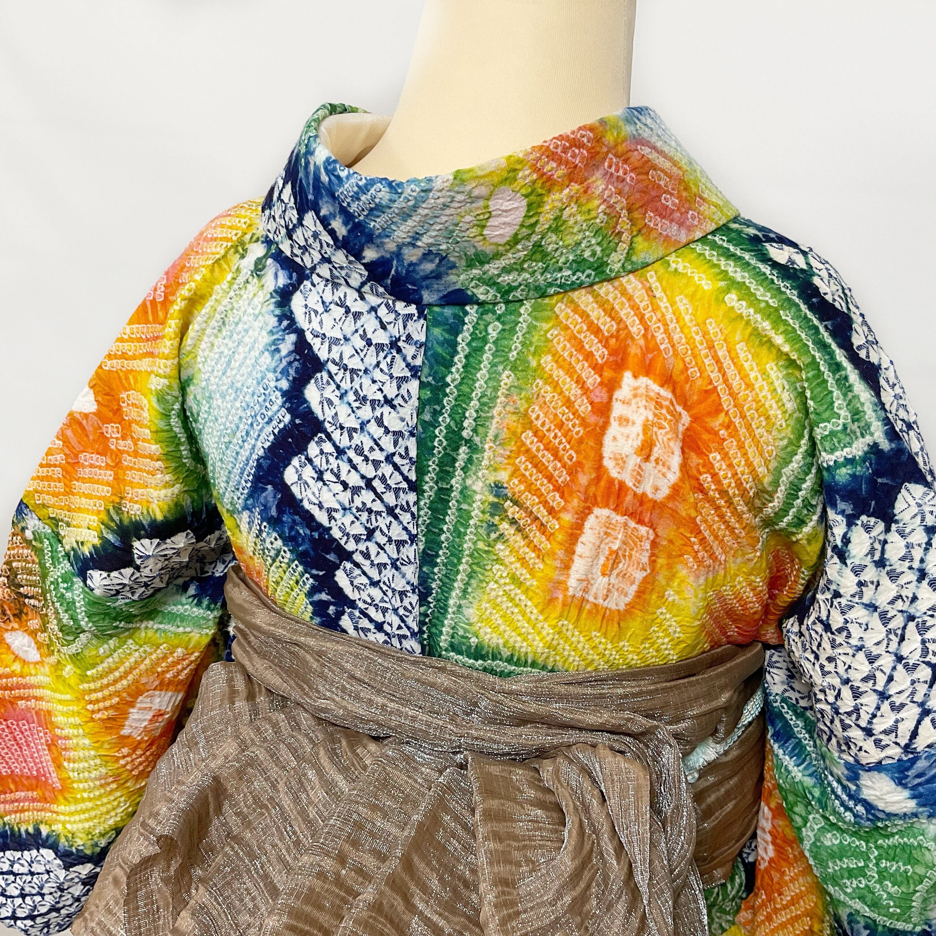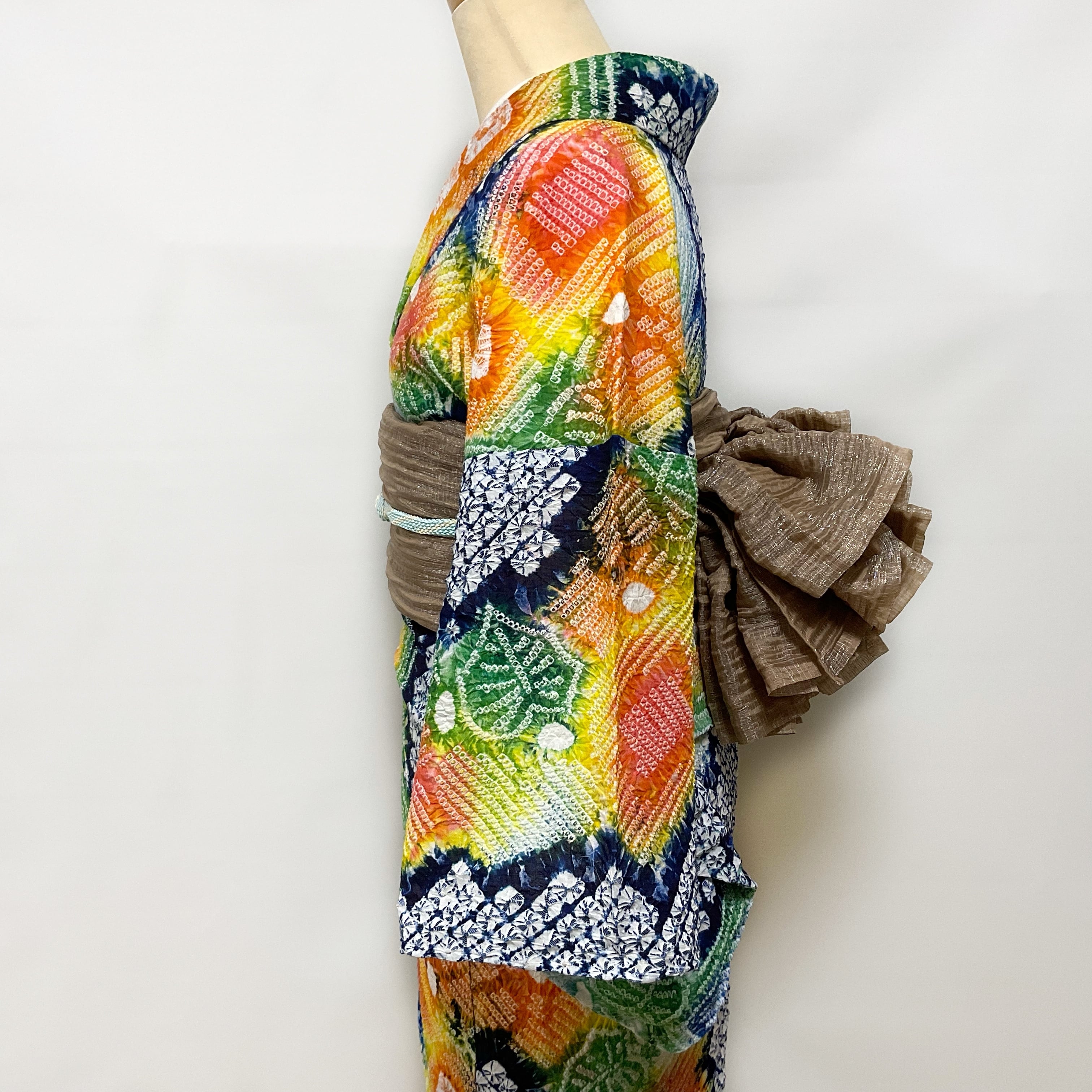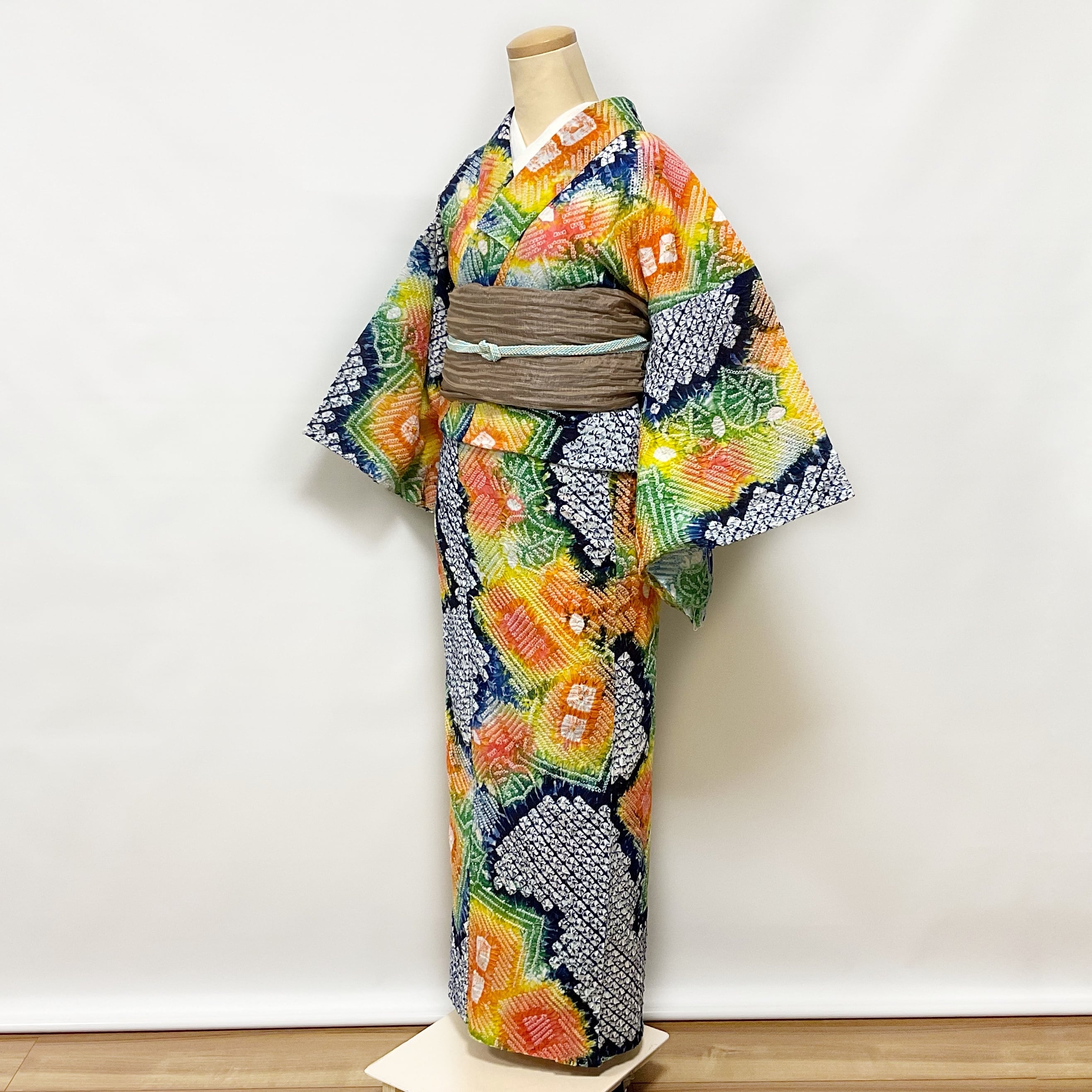 有松絞り 浴衣 カラフル 植物柄【231737】