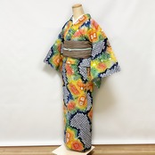 紺色の他にも、グリーンやオレンジ、黄色や薄い赤などで彩られたカラフルな浴衣です