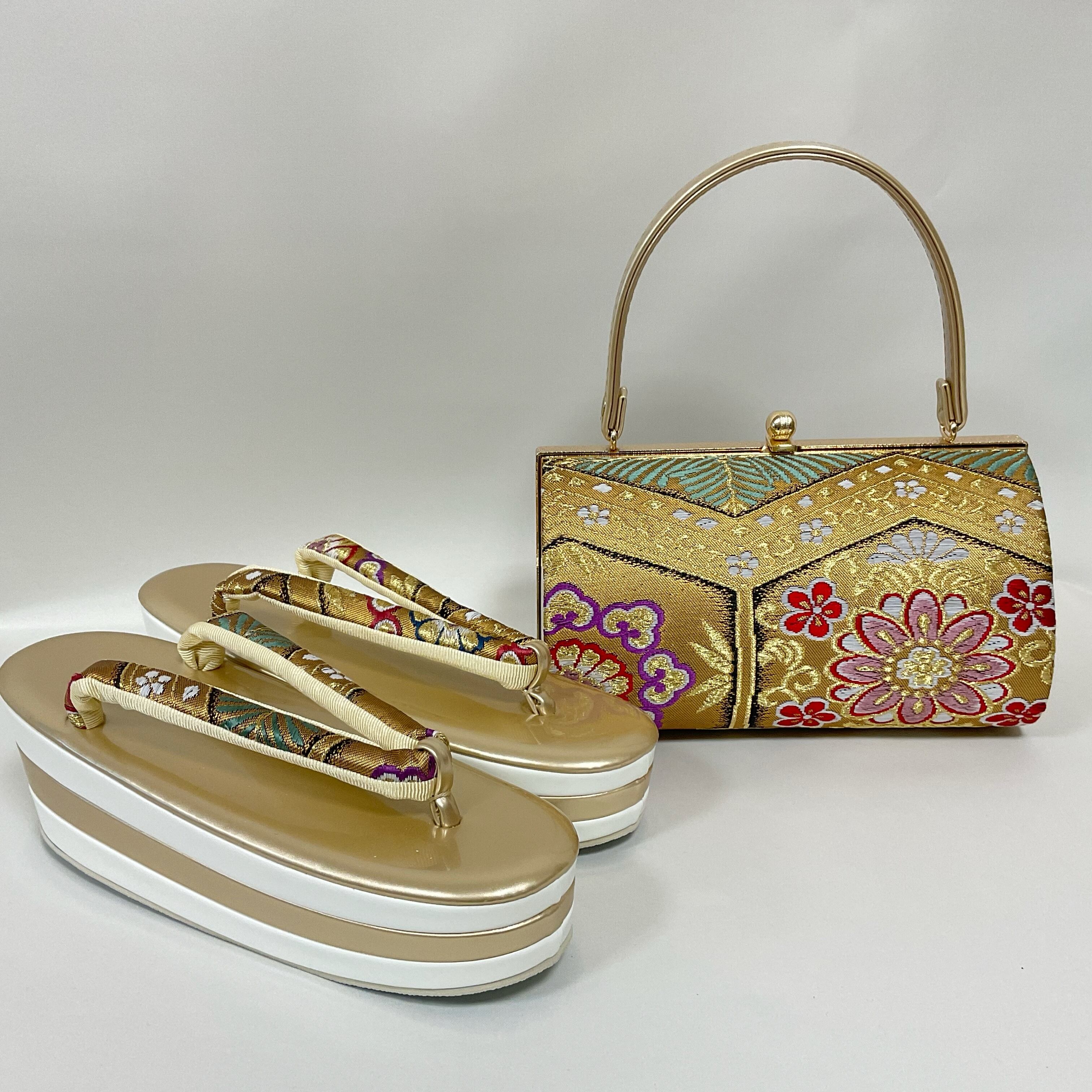 様々な色柄に合わせやすい古典柄の礼装用草履バッグセット