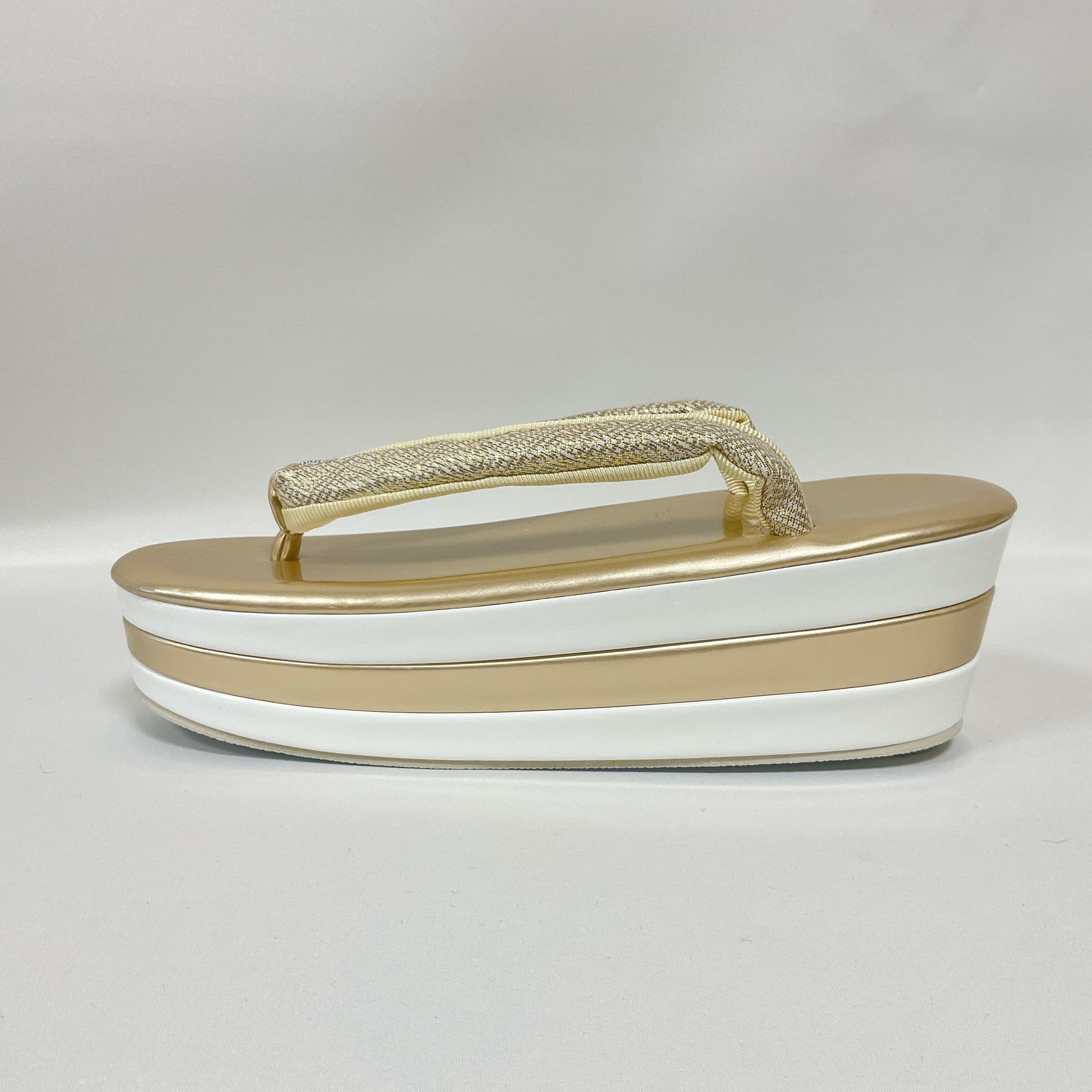 ゴールドと白の3段草履ですので、振袖や訪問着などに合わせていただけます