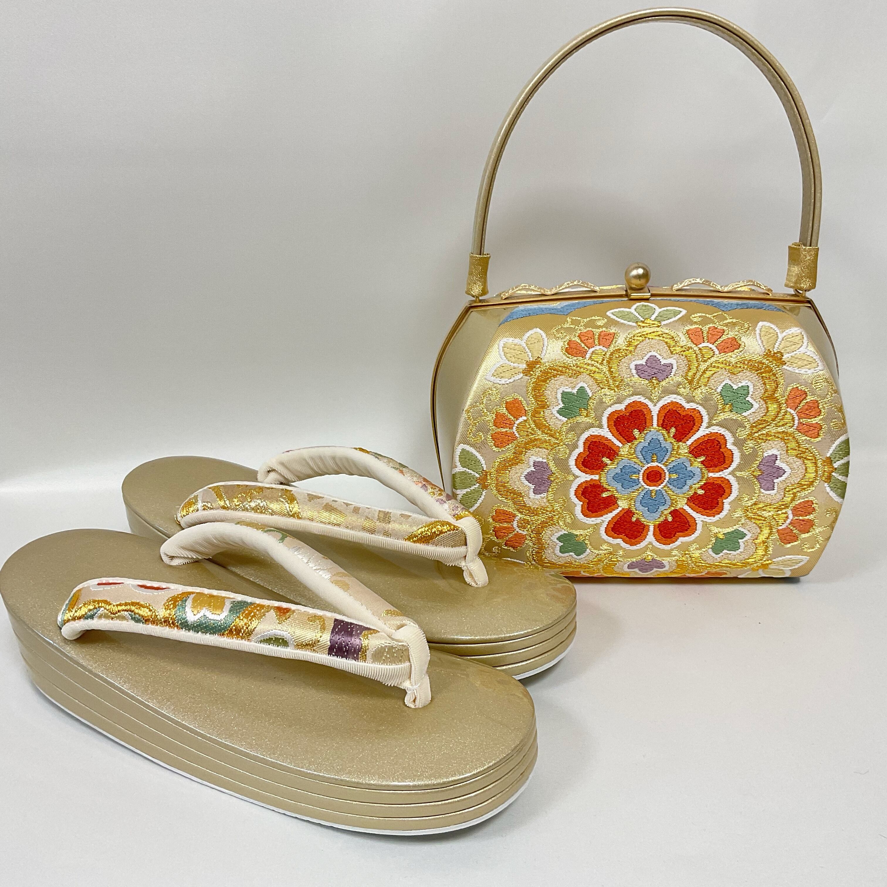 縁起が良く華やかな色柄が目を惹く、礼装用草履バッグセット